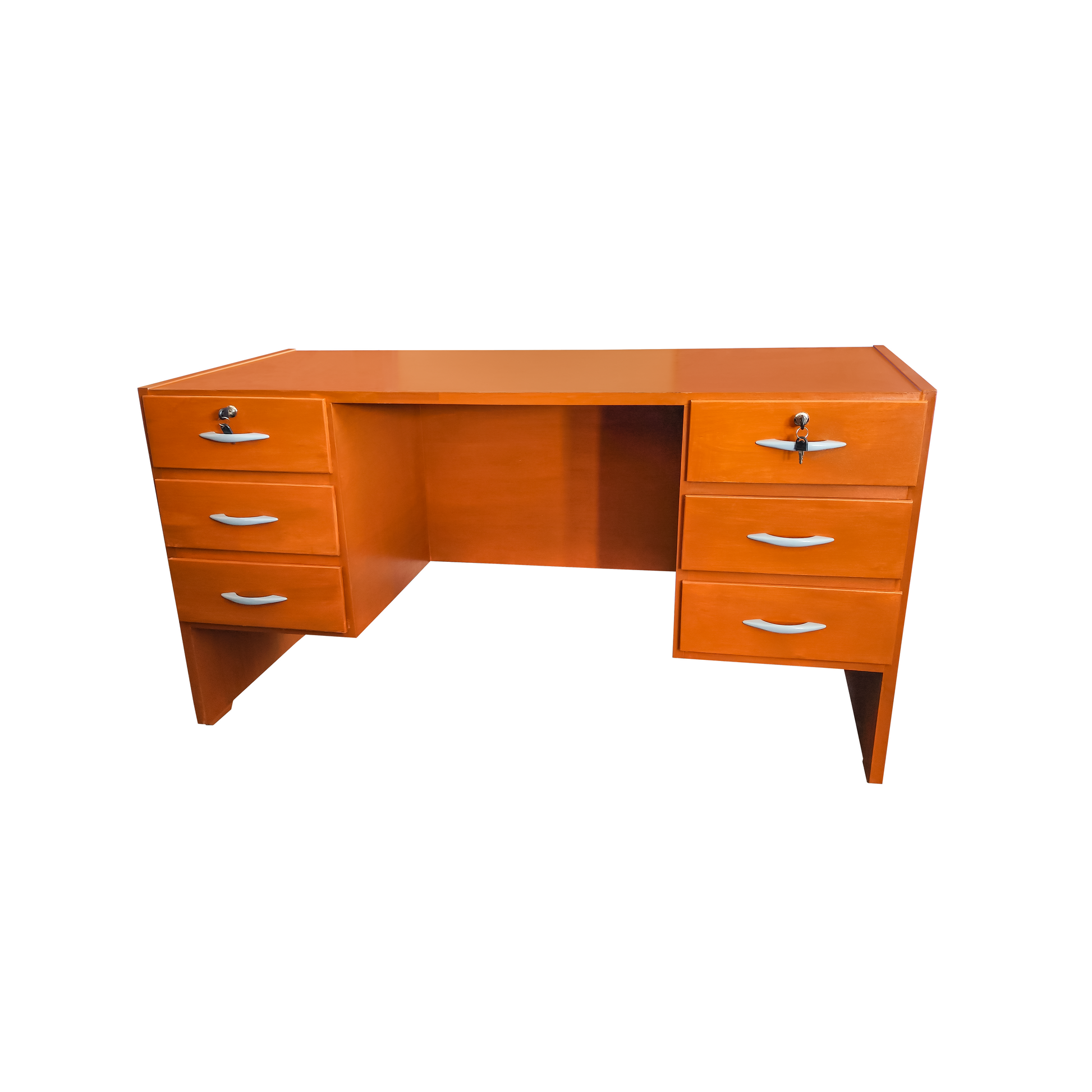 Este escritorio es una excelente opción para el hogar, la oficina o incluso para los estudios. Tiene 6 cajones espaciosos, para guardar documentos, útiles o lo que necesites tener a mano. Dos de los cajones vienen con llave para mayor seguridad.
